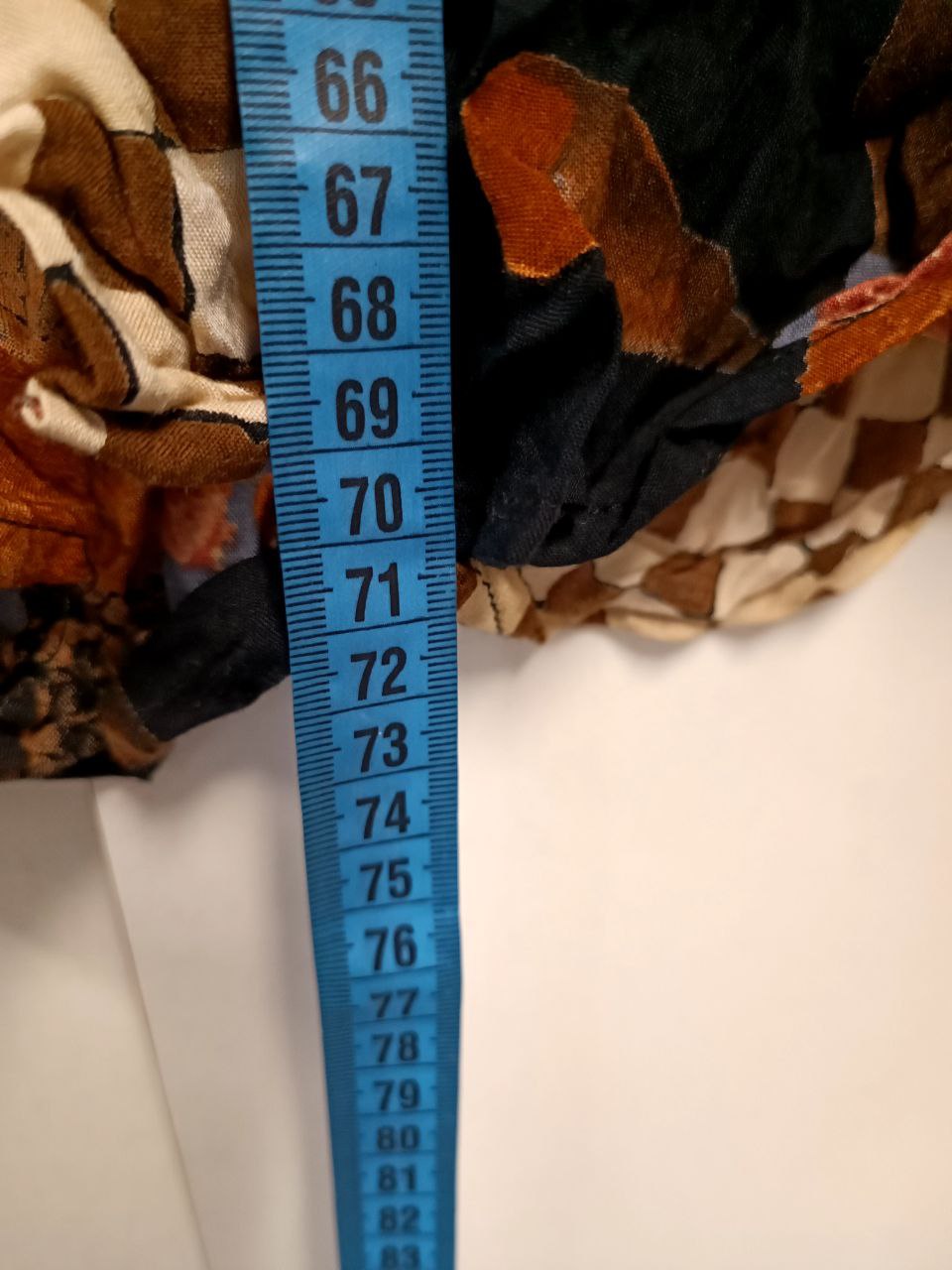 Vintage 1980s viscose shirt with an abstract / funky patchwork-style print featuring checks and designs in shades of orange, brown, and beige. Relaxed fit with slightly puffed sleeves and a classic collar. In perfect condition. Shown in the photos worn by a size S / IT 40, height 1.68 m, but fits comfortably up to a size XL / IT 46. Flat measurements: shoulders 46 cm, underarm to underarm 56 cm, length 71 cm, sleeve length 60 cm. Feel free to contact me if you need any more information!
